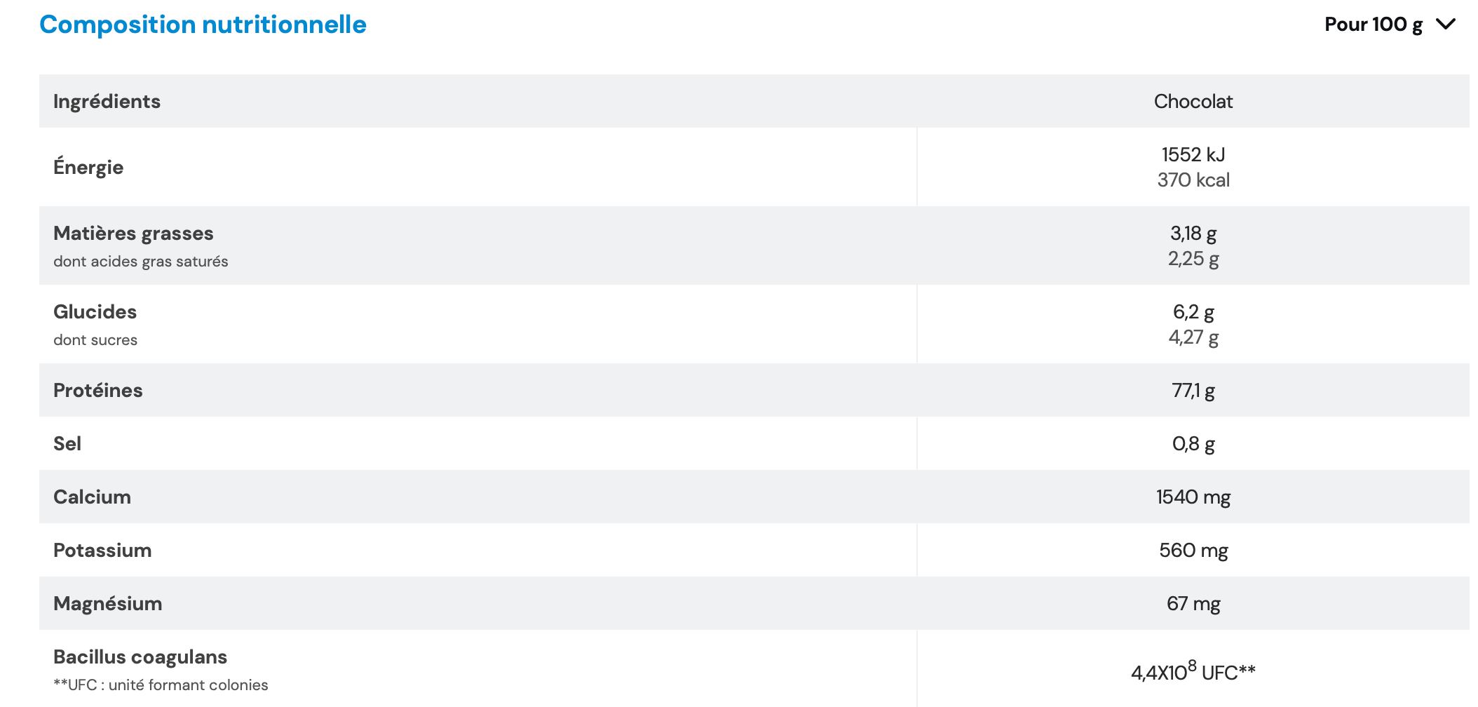 50 % de Whey Native microfiltrée à froid, rapidement assimilée