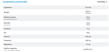 Certains produits peuvent contenir du lactose ou du gluten. Nous indiquons clairement sur chaque fiche produit la présence ou l’absence de ces allergènes. Nous proposons également une gamme de produits sans lactose et sans gluten.