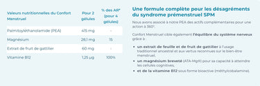 Aide à atténuer les crampes, les ballonnements et les variations d’humeur, tout en contribuant à un meilleur bien-être physique et émotionnel.