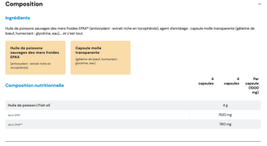 • Huile de poisson sauvage EPAX®, antioxydants naturels (tocophérols).