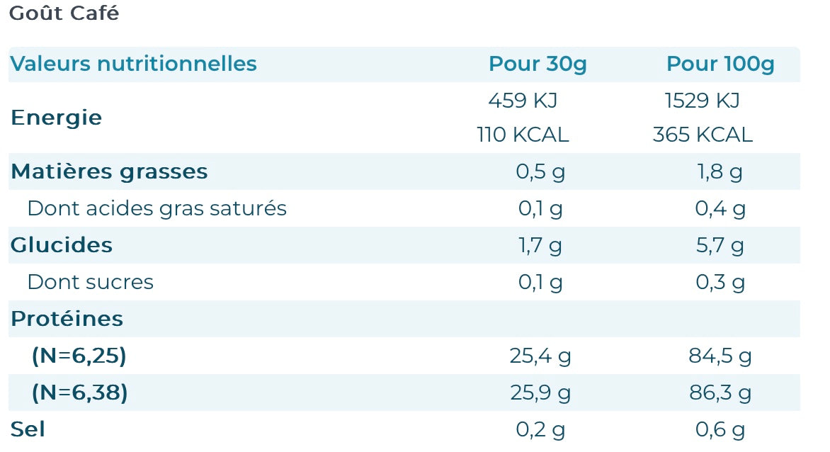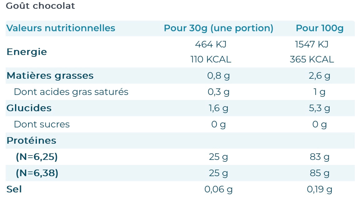 Mélanger 1 dose (30 g) dans 200 à 250 ml d’eau ou de lait végétal, après l’entraînement ou à tout moment de la journée selon vos besoins en protéines.