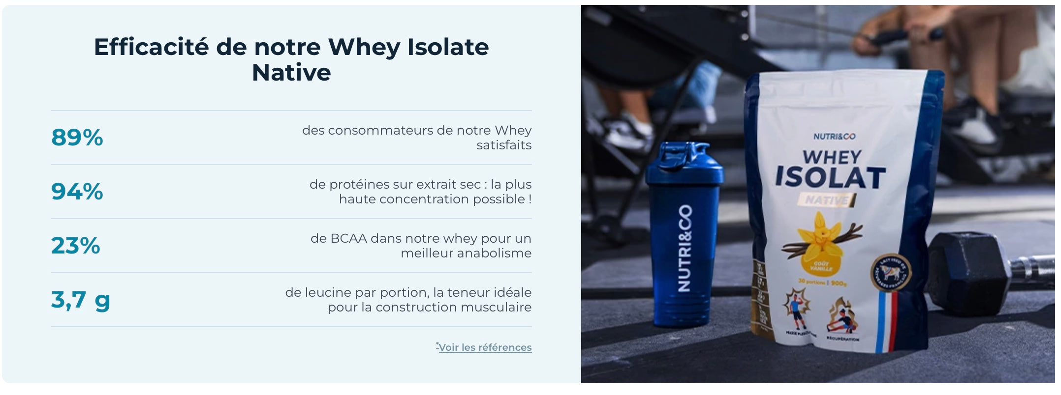 Formulée à base d’isolat de whey native issue de lait frais, offrant un taux exceptionnel de 90 % de protéines pures par portion.