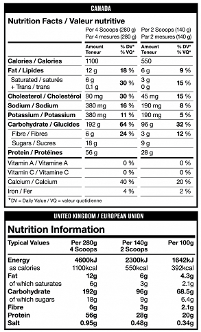 Mélangez 1 portion (environ 280 g) dans 500-700 ml d’eau ou de lait, à consommer après l’entraînement ou en collation entre les repas, 1 à 2 fois par jour selon vos objectifs.
